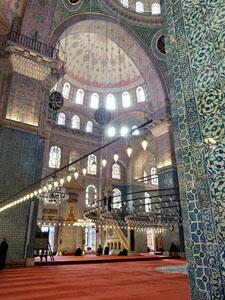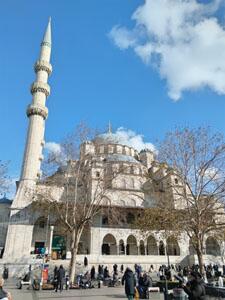 次に海の方に戻って、イェニ・ジャーミィ見学。大きい。高い。見栄えがいい。内部に入ると、柱の青いアラベスク模