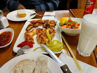 が、量が多すぎる。メニューの写真よりボリューミーって変じゃない?食後のスイーツ(バラクワというはちみつ漬けの パイ)とチャイもついてきた。どうしても食べきれなかった分は、テイクアウトにしてもらった。 ←呼び込みの圧に負けて入ったのだったが、いいレストランだった