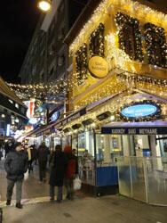 18時半頃宿を出て、繁華街に向かう。もう暗くなってきていて、道や店の照明がきれい。夕食はチェーン店みたいな