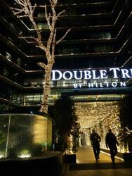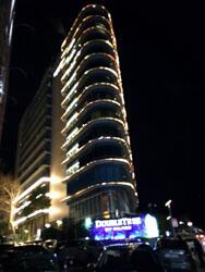 宿の近くまで来て驚いた。うちのホテルもすごい派手にライトアップしている。暗くなってから見るのは初めてだったの