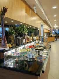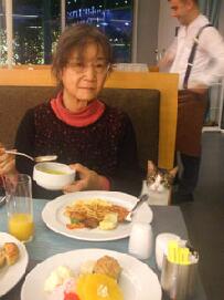 飼い猫かどうかも分からない。食べ物目当てに寄ってきたと思うが、人間の食事は塩分多すぎて猫には悪いので、涙 をのんで、無視することにした。するとそのうち、隣の男性客の方にすり寄りに行った。 ←豪華なビュッフェ ←猫はホテル内に2匹