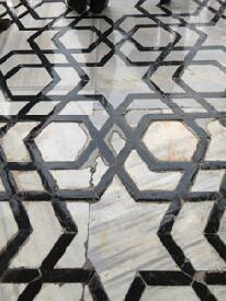 様のタイル装飾が目立つ。天井のパステルカラーのアラベスク模様が優しい感じ。ここは17世紀に完成。↓ ![]()