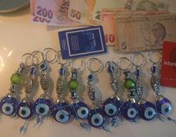 すごい人出でにぎやかだ。でも何もかもが高い。出入り口の門が10以上あるので、それを頼りに居場所を特定する。 バザールを出てすぐのお店で、ナザールボンジュー(目玉型の青いガラスのお守り)がお値打ちなのを見つけて、お土 産として10個買った。デパートのトルコ物産展で、1個千円で売ってるのを見たことがある。ここでは10個で同じくらい の値段。