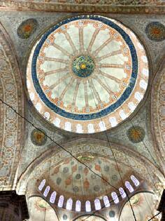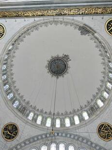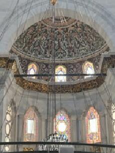 ヌルオスマニエ・ジャーミィの天井、ドーム、ミフラーブ(メッカへの礼拝の方向を示すへこみ) ↓