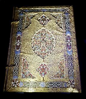 宮などで使用されたランプ、家具、アクセサリーなどにも手の込んだ面白いものが多かった。 ただ、小学生が鑑賞す るには難しいんじゃないかなーというのが感想だ。 ←コーランの表紙 ←象嵌の箪笥