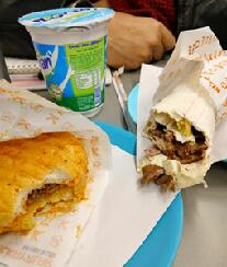 その後、夕食。ひき肉が入っていてケチャップがバンズにしみ込んだ濡れバーガーとビーフのドネルケバブのデュ