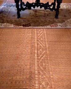 然違ってこれはこれでおもしろい。大広間には巨大な有田焼の壺が4つも飾られていた。鷹と松の柄の染付だ。床は 基本的にござが敷いてあり、部屋や廊下の中央部分にその上から絨緞が敷いてある。これは発見だった。急になんだ か親近感がわく。