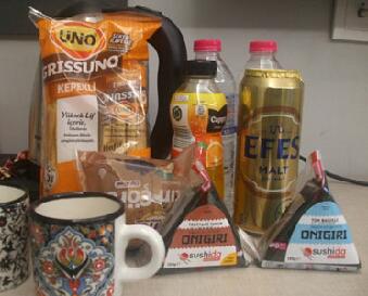 ろいメーカー名。1つ109リラ(400円近い)。ツナマヨと照り焼きチキンを購入。他にカリフォルニアロールとか不明の具 のもあった。開け方は日本のと同じで「@ABの順にやれ」と、日本語と英語で印刷されている。ツナマヨは日本のと同 じ。照り焼きチキンの方はほぐしすぎだし、味も微妙に異なり、同じものとは到底言えなかった。飲み物としてトルコ産ビ ール、500ccでアルコール分5%、モルト100%のを買った。日本のと同じでおいしかった。イスラム国であってもトル コはけっこう緩くて、うれしい。 ←SushiDaは寿司も作っている